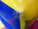 Each quick repair patch is made from an exceptionally tough, matte finish, abrasion resistant, material that resists puncture and tearing. It is combined with an aggressive adhesive formulated for high strength bond on all vinyl moonwalk and bounce house inflatables.
